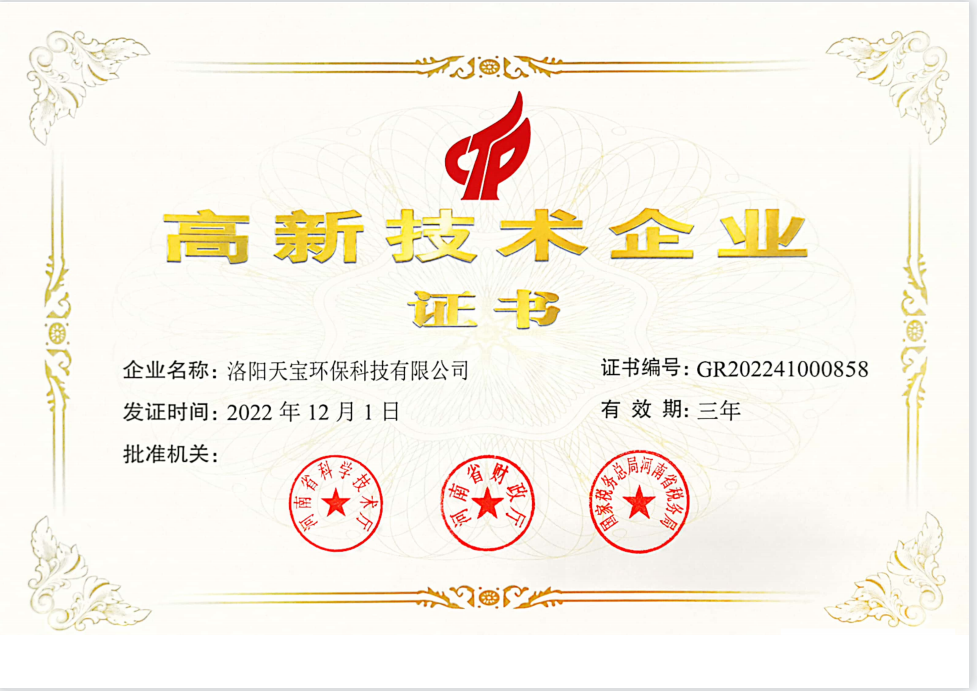 洛陽天寶環保科技有限公司位于洛陽國家級高新技術產業開發區,是一家專業從事工業揮發性有機物(VOCs)污染氣體的環保工程治理,及其相關技術研發、產品制造、設備安裝和運營服務的高新技術企業。